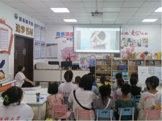 爱国诚信教育。实践队员为社区儿童讲述爱国主义的内涵及其重要性,讲述爱国故事,培养儿童的爱国精神;同时引导社区儿童积极分享学习、生活中诚信相关的经历,引导其诚信学习和诚信生活。
