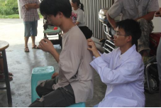 师生在青龙村第一驻村书记李周义的带领下,走访农户,调研当地的医疗情况以及居民的健康情况,并为行动不便的老人测量血压。车晴娅、罗婷婷、汪牧非、陈玉等同学不仅向村民们宣讲喝生水的危害以及狂犬病的危害与防治,还为学龄期青少年进行脊柱侧弯检测。活动过程中,同学们与村民深度交流,一方面向村民科普在日常生活中如何采取常见疾病的防治措施,增强健康意识,铸就健康生活,另一方面同学们也更加切身了解到广大农村的常见疾病类型和就医环境,为今后的医学课程学习和医疗工作埋下了求知的种子。