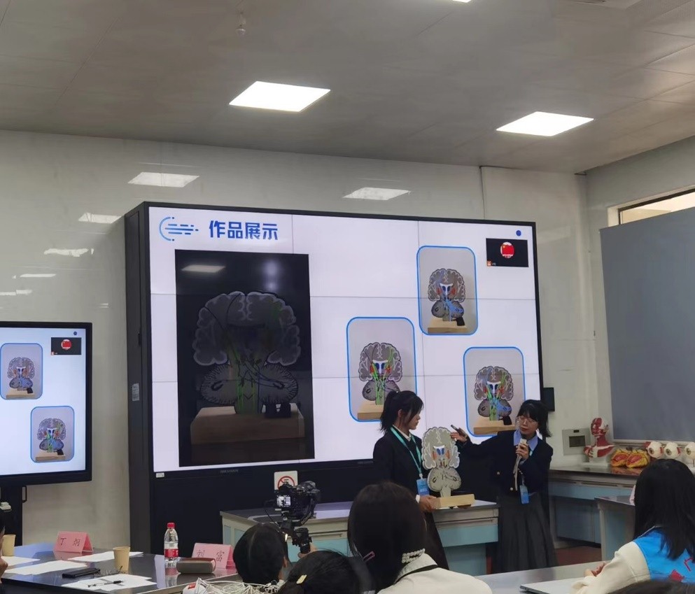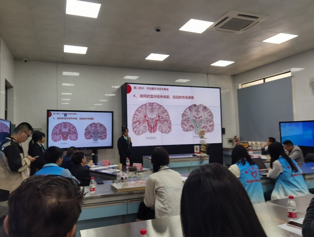 公司2022级影像专业的张艺萍同学代表参赛选手在大会上发言,经过为时1天的激烈角逐,公司参赛的三支本科团队员工组在比赛中发挥出色,同学们思路敏捷,条理清晰地在规定时间内阐述团队的《神经传导通路》、《锥体外系环路》和《胚胎发育动态模型》设计思路,设计方法,设计材料及设计理念,得到与会专家和同学的高度赞扬,最终三组团队在本次教学模型创新设计大赛获得一等奖1项、三等奖2项。通过参赛,检验了教研室在员工培养上取得的成效,彰显了同学们扎实的专业知识及创新能力,同时也给同学们提供了很好的学习锻炼机会。