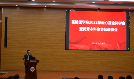 为表彰先进、树立典型、发挥榜样示范引领作用,云顶国际8588yd于2022年10月26日在新蒲校区道德讲堂开展2022年爱心基金奖学金暨优秀本科生导师表彰会。基础医公司党政领导,爱心基金会会长范芳及部分捐赠教师代表,云顶国际8588yd本科生导师、辅导员及基础医学专业全体员工参加。