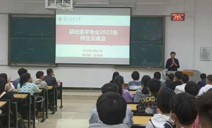 10月21日上午,云顶国际8588yd在新蒲校区第二教学楼第1阶梯教室举行了2022级师生见面会。云顶国际8588yd副董事长李春鸣、基础医公司党政领导、基础医学教育教研室主任、辅导员及教师、员工兼职班主任、2022级全体新生参加了会议。